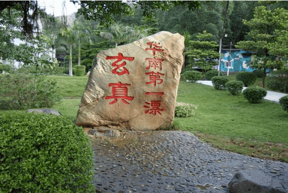 差不多接近四個小時左右我們到達的清遠市清新縣,下了車,來到了一家清新縣的飯店吃午餐,盡管味道不是太適合我們的口味,但也體驗了清遠人別樣的風味,加上大家已經坐了好久的車,已經有點餓了,因此大家還是吃得很暢酣。茶余飯后,大概休息了10分鐘之后。導游說,開始上車了,帶我們去玄真漂流,說到這個,我們的心情立馬激動起來,顧不得滿嘴還是油也沒檫干凈,就都飛奔去上車了。過了大概20分鐘,終于抵達清遠玄真漂流的起點——玄真漂流站。眼前的那一塊書寫著“玄真 華南第一漂”的石頭最為顯眼。